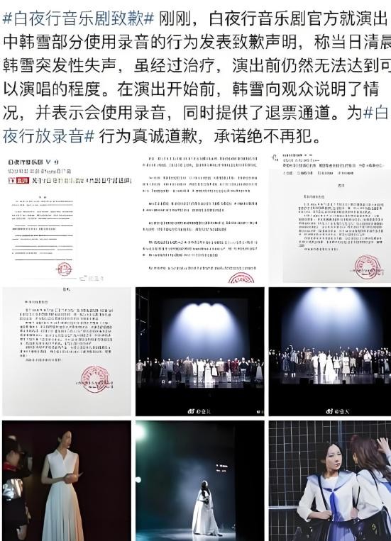 然而,当韩雪因嗓子发炎无法继续演唱时,她既没有切换另一位主演,也没有提前通知取消演出,而是选择了假唱。