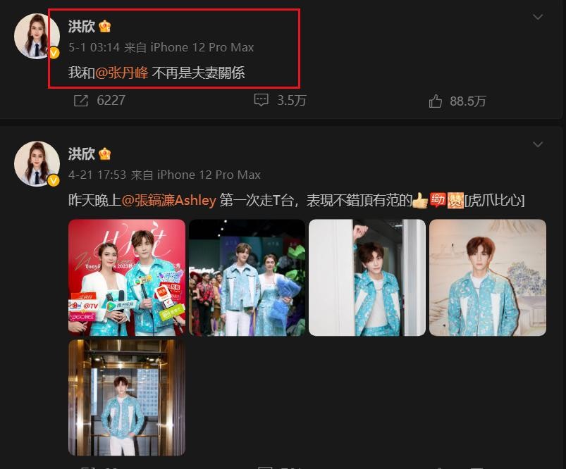 如果说5月娱乐圈中第一个大瓜,要数洪欣张丹峰一家的离婚闹剧了,这两人与经纪人毕莹三角恋一直以来在娱乐圈炒得沸沸扬扬,时隔这么久在5月的第一天洪欣就连发3条声明称自己和张丹峰离婚了,时隔十几天过去,作为话题的另外两人张丹峰和毕莹依旧在社交平台上活跃,而洪欣却是一直沉默。