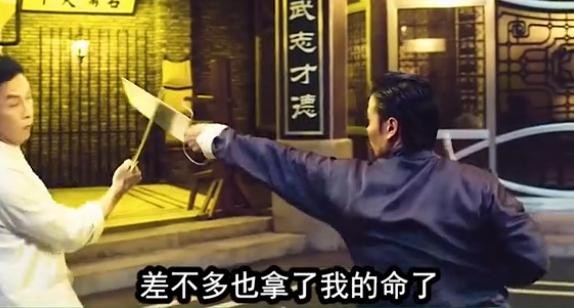 为什么这么说呢?因为当时上头的张晋,提着刀一直从棚左边追杀甄子丹到右边,速度快到镜头都追不上了,可想而知其中的惊险。