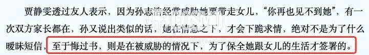 后来为了保全跟女儿的生活跟前夫下跪求情,还签下过悔过书。一场婚姻被迫变成哗众取宠的笑话不说,它对女人伤害的极致,贾静雯都尝过了。