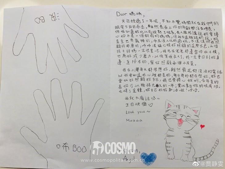 也因为父亲早逝,她发觉自己后来的很多状态都跟在年少时却没有父亲依赖有关。于是尽管离婚了,还是要大女儿跟爸爸保持紧密的关系,她不要她的女儿重蹈覆辙。金钟奖后,贾静雯晒出女儿写给她的信: