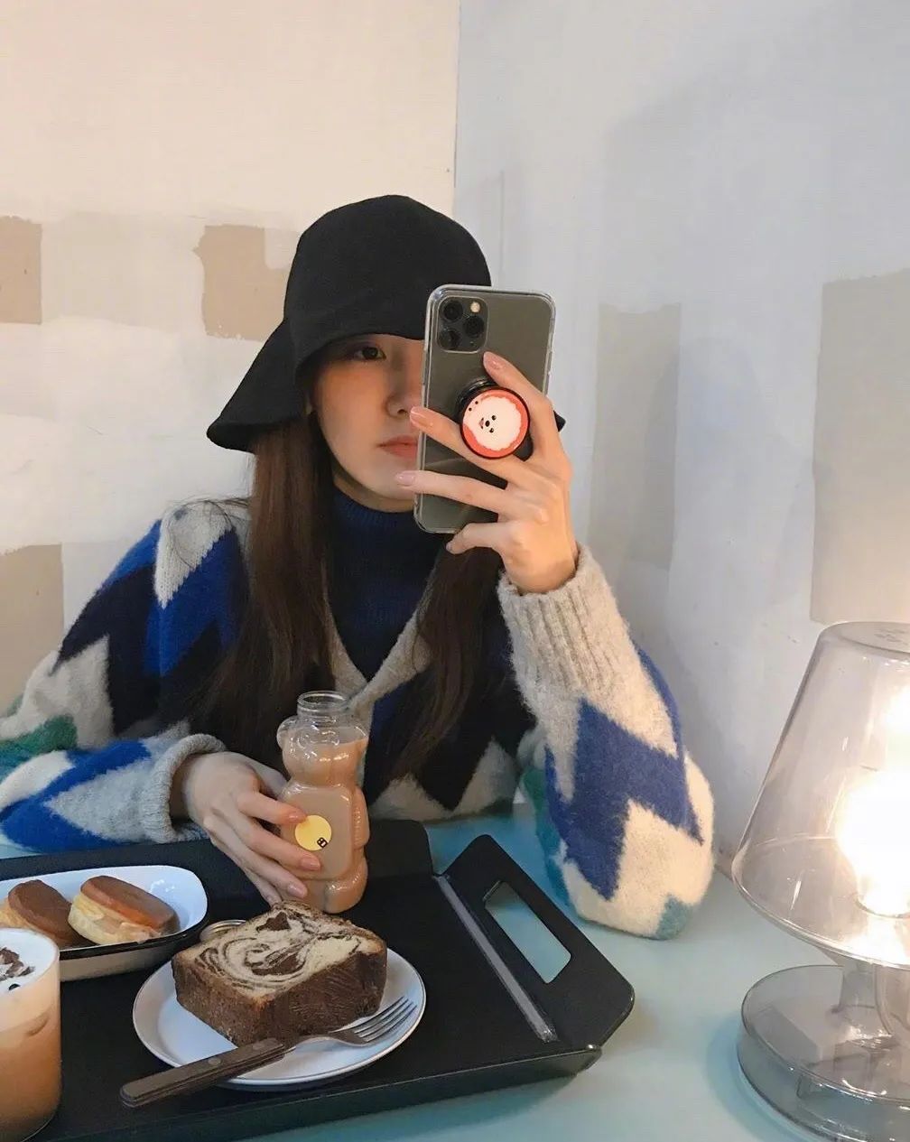 林允儿的复古针织开衫加同色小高领,保暖升级的同时,还很有种知性文艺范儿。