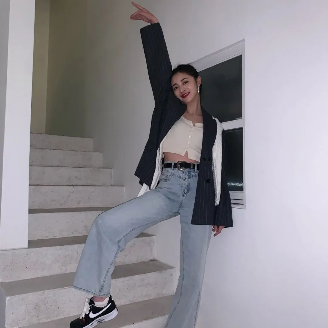 周洁琼的西装和短针织衫的组合,前卫又随性,是时髦精本精了~