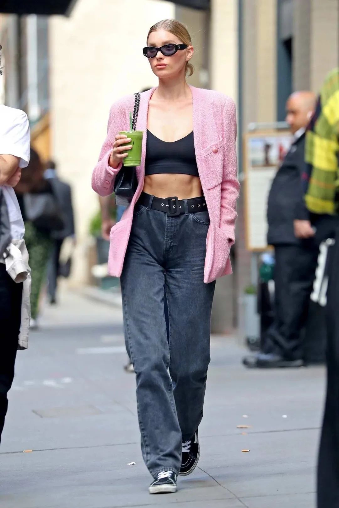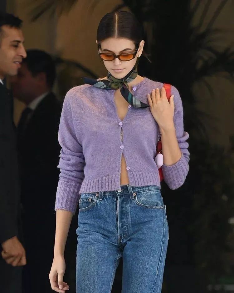 天气再好一点时可以学习Rose和Kaia Gerber,在针织开衫里面搭配一件crop top,把慵懒随性和性感演绎得刚刚好。