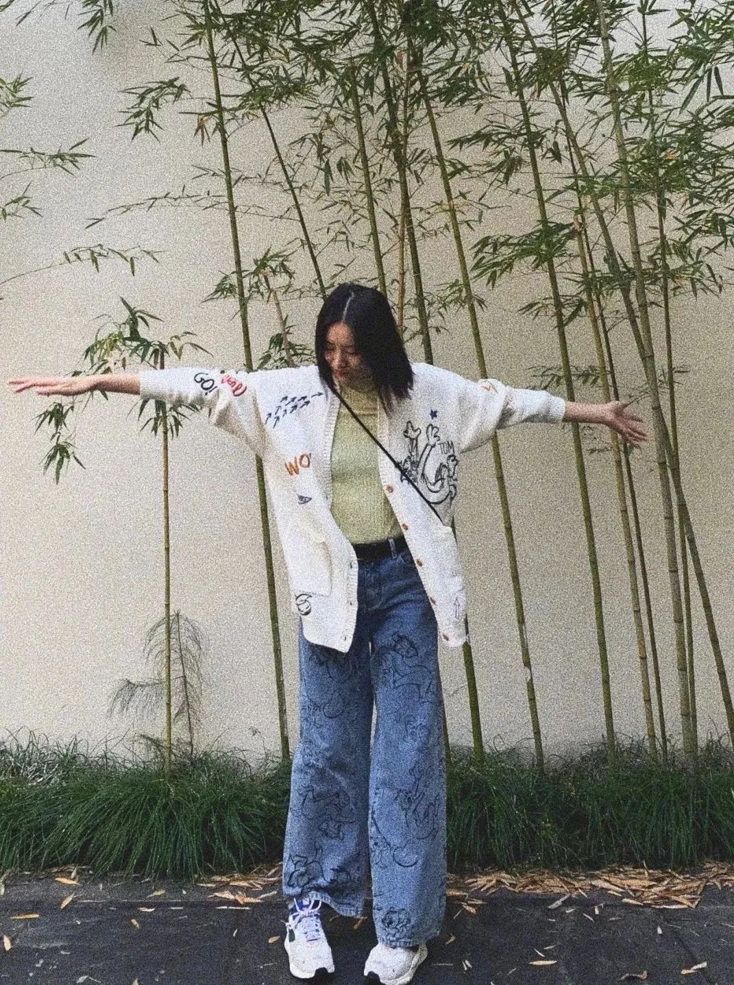 白t+针织衫的经典穿法对于针织衫没有太多要求,长款短款都适用。对身材有自信的妹子们可以尝试李娜恩和Jennie的短款,更显好身材。