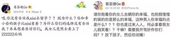 章子怡和大女儿亲密合影,最难以接受的肯定不是一众吃瓜群众,而是小苹果的正牌亲妈。怒火中烧的葛荟婕,曾不止一次在微博暗讽她拿自个闺女作秀,言辞之间尽是愤愤不平顺便怼了一把汪峰。