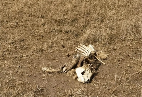 这是黄河内蒙古达拉特旗段“国堤”内侧一头已风化成骨架的死猪。半月谈记者 贾立君 摄