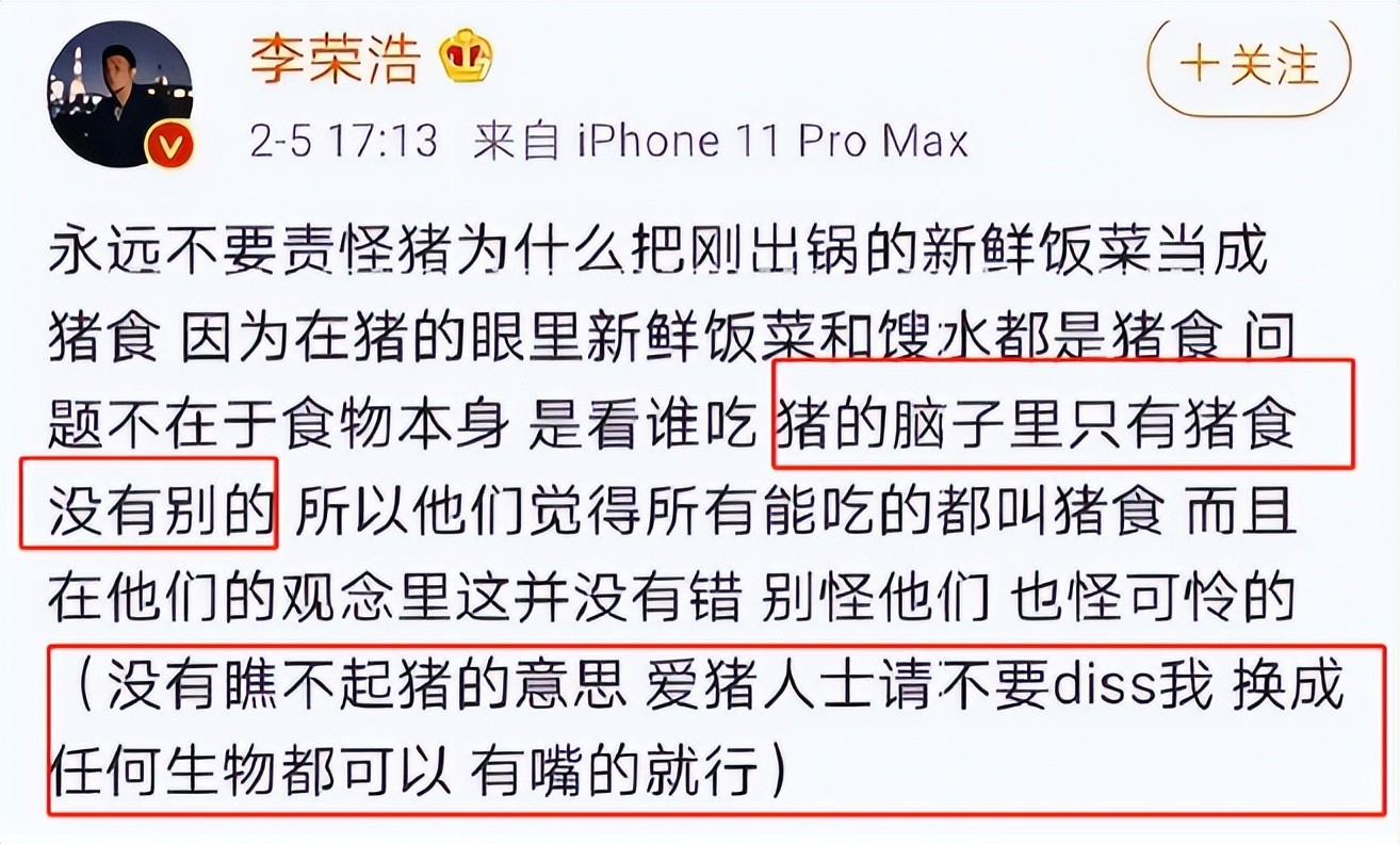 甚至讽刺听众是猪,傲慢的态度令人错愕。