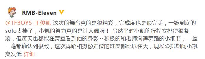 这次的舞台真的是很精彩,完成度也是很完美,一镜到底的solo太棒了,小凯的努力真的是让人佩服!