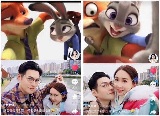 两人拍的朱迪和尼克小视频,也非常有爱,简直神还原,一个腹黑温柔,一个俏皮可爱。