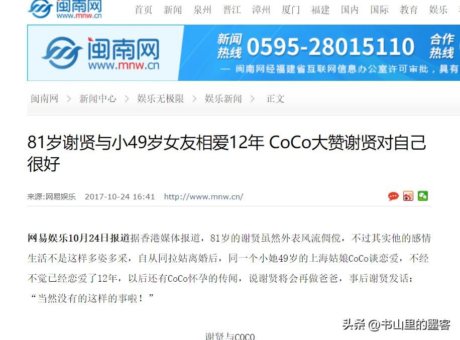 闽南网——2017-10-24《81岁谢贤与小49岁女友相爱12年 CoCo大赞谢贤对自己很好》