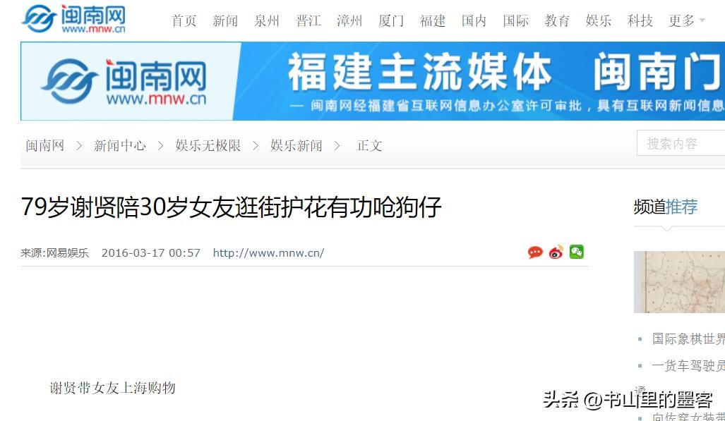 闽南网——2016-03-17《79岁谢贤陪30岁女友逛街护花有功呛狗仔》