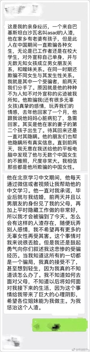 在2017年,一名叫Muhammad Asad Salim的洋渣男在已经有老婆孩子的情况下,还同时交往多位中国女友,更可怕的是,他还用针孔摄像头偷拍视频,然后上传到相关网站上。