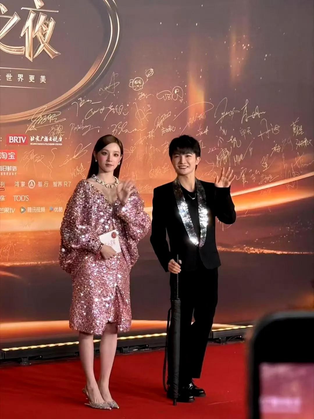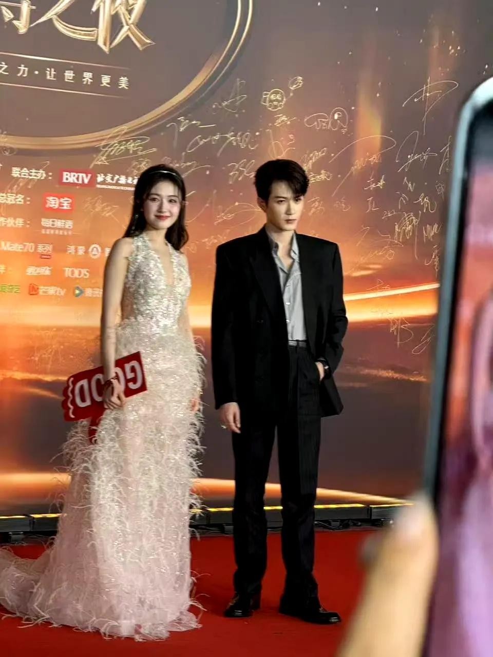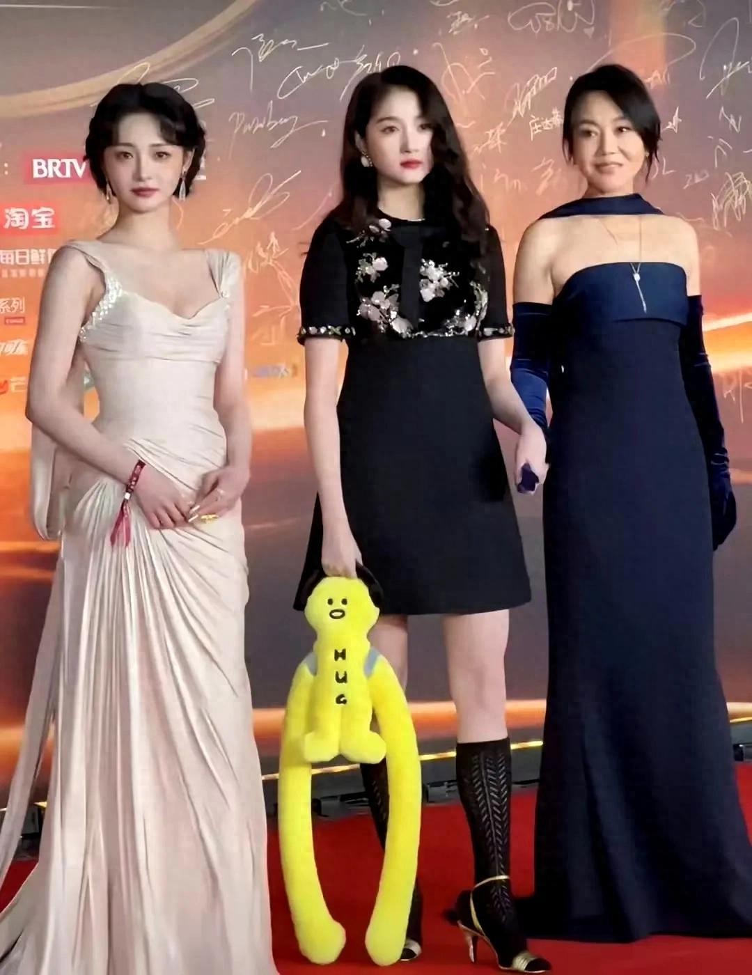 众明星红毯合影直拍,未修图的状态下,关晓彤这次造型略显老气!