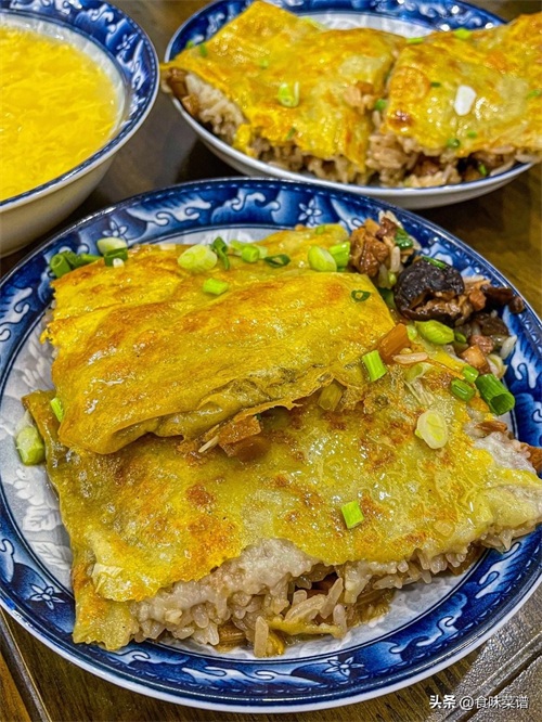 每一口都能感受到蛋、菇、肉的香气交织在一起,让人回味无穷,三鲜豆皮是一道集美味、营养于一体的小吃,无论是作为早餐,还是作为下午茶,都是非常好的选择。