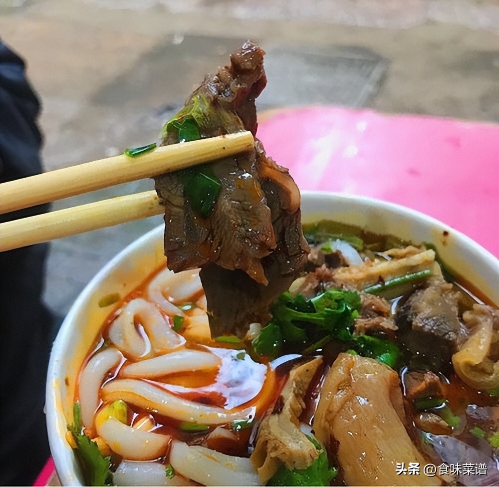 武汉牛肉粉的汤头是其灵魂所在。选用新鲜的牛骨熬制数小时,汤色清澈,口感醇厚,每一口都能感受到浓浓的牛肉香味。汤中的牛肉块,用料十足。