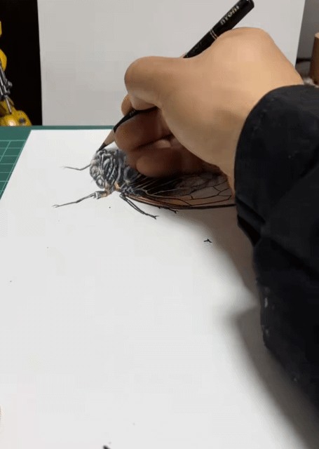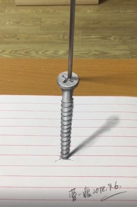 就这样,悬浮在空中的锥子、喝茶的水杯、立在纸上的螺丝钉,还有出淤泥而不染的荷花,全都被他画得栩栩如生、真假难辨。看到一痕老师的大作,甚至有网友留言,想让他给自己画个女朋友。