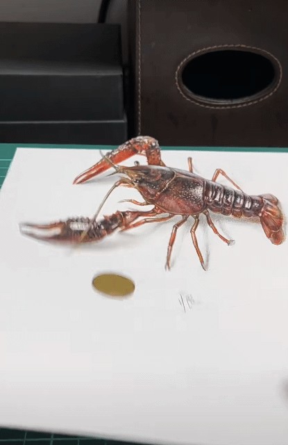 而一痕老师也透露了一些画3D画的技巧,想要逼真的话,就必须画出“变形”的物件,比如在画一个水杯时,原本杯口是需要画成椭圆形的,但在3D画里就必须得画成圆形。还要呈现出一种头大脚小的感觉,画完之后再斜着拍照,这样就能呈现出立体感了。