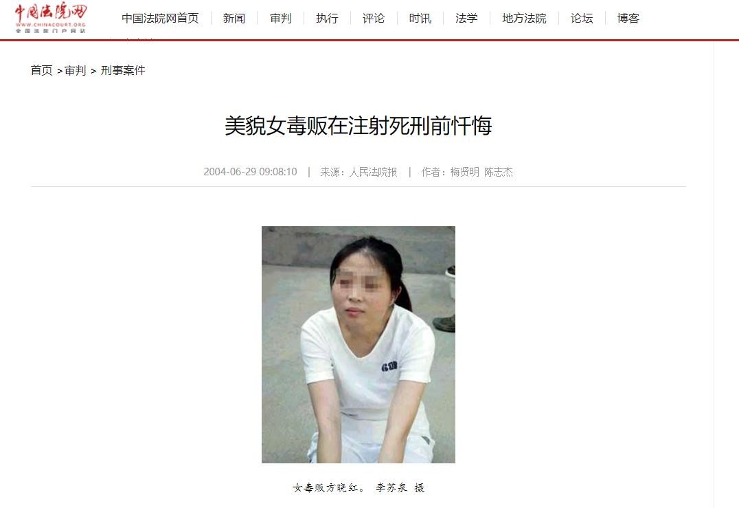 美貌女毒贩在注射死刑前忏悔——中国法院网,2004年6月29日发布