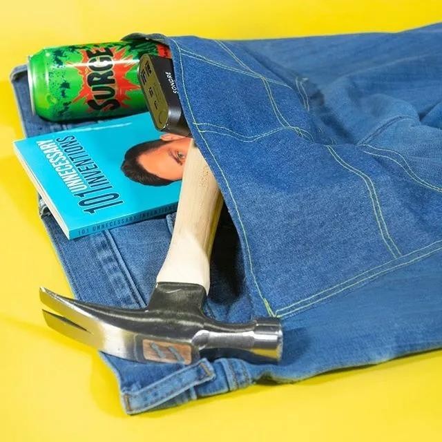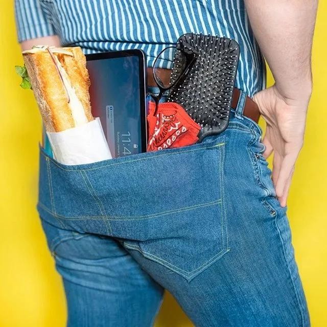 别人牛仔裤背后的口袋都是用来装饰的,小哥的口袋,恨不得可以装下全世界。