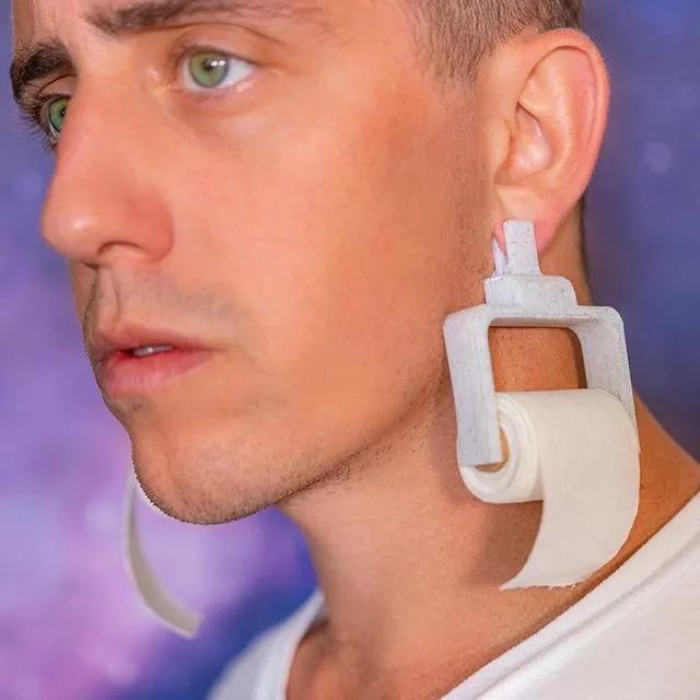 比如,这幅让小哥成功出圈的卷纸耳环,也叫“想哭就哭耳环”。