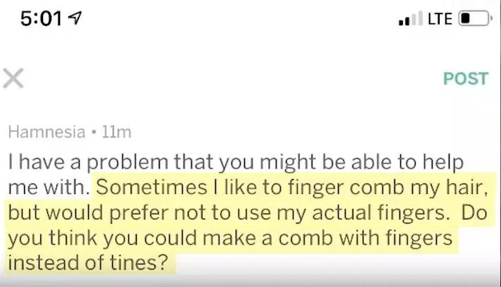 “哥哥哥哥,我喜欢用手指梳头,但是又不想用我自己的手指,你能帮帮我嘛?”