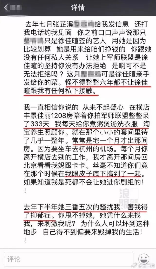 4、大骂张芷溪整容,因为张芷溪的“骚扰”,自己已患上抑郁症。