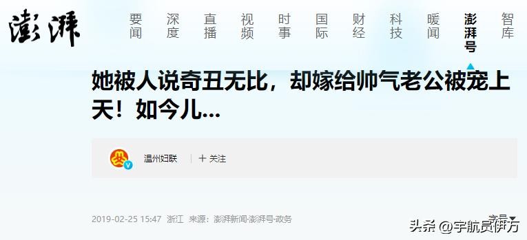 《温州妇联》在2019年2月5日发布关于“她被人说奇丑无比,却嫁给帅气老公被宠上天!如今儿...”的报道