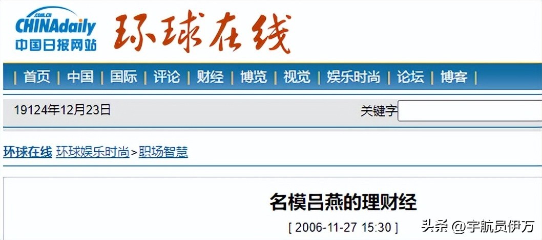 《环球在线》在2006年11月27日发布关于“名模吕燕的理财经”的报道