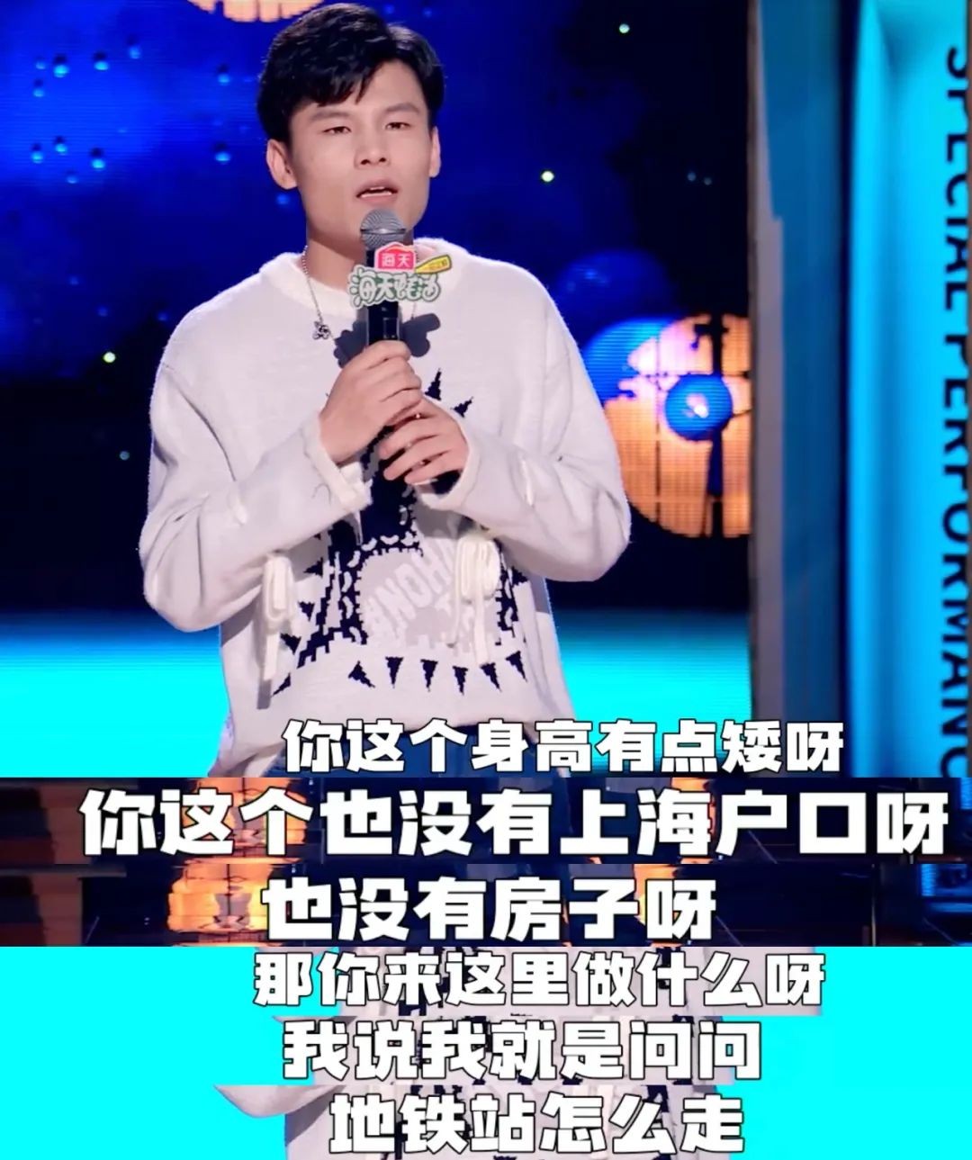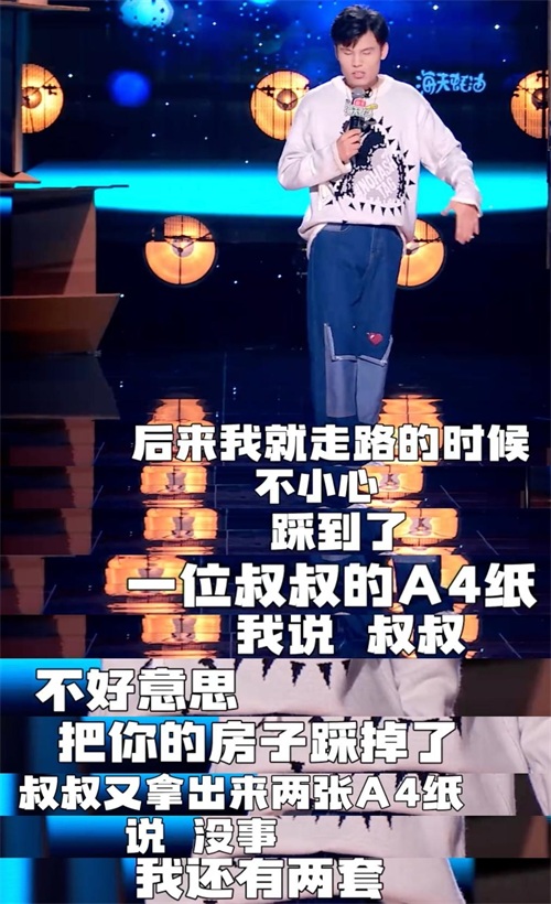 其实杨蒙恩之前是以漫才形式出现的,到了最后一期,这次终于让他别在憋着了,在舞台上开启他最擅长的抱怨模式。首先把“脱口秀天团”说成是齐鲁民间艺术团。