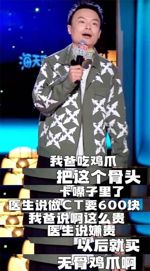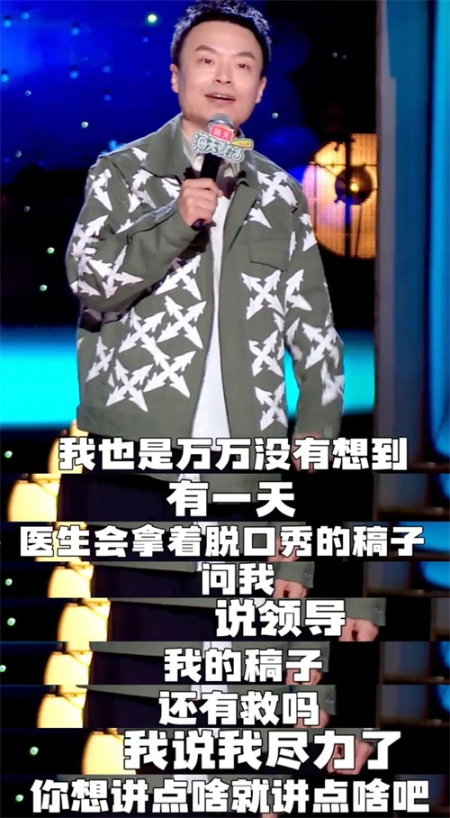 接下来,很顺理成章地说到治病和体检的桥段,也就自然地用上了自己大头梗。这是离婚话题之外,最能代表他的笑点。
