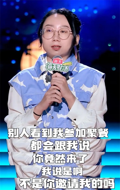 之前看过她表演的观众,应该都记得那股特别丧的状态,以及特别有杀伤力的台词。比如“快乐的人也是要死的”这类风格的语言在这次节目中又再次展现出来,换成了“这里也没有说外向的人都是狗的意思”。就是那种你无法反驳,但好像又被冒犯到的感觉。