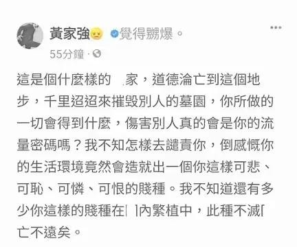 网友们纷纷在黄家强的社交平台留言,指出破坏者的真实身份,并要求他公开道歉。然而,黄家强却对此置若罔闻,甚至继续发表一些不当言论,进一步加剧了争议和矛盾。