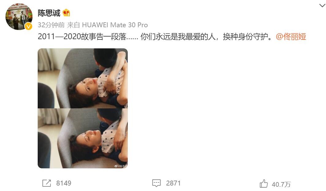 陈思诚、佟丽娅通过微博宣布离婚