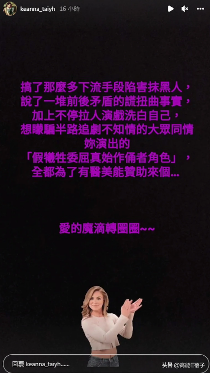 结果不久后,两个人又在社交平台各种阴阳怪气地嘲讽Keanna贪财,他们的粉丝还去Keanna社交平台那里质疑Keanna打官司的真实目的。
