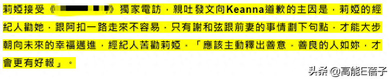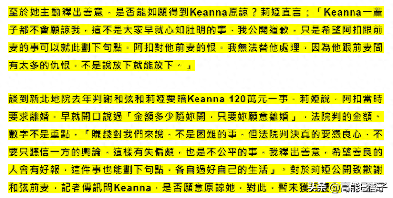 Keanna也不是吃素的,直接在网上晒出发现谢和弦和莉娅的出轨细节,正式开撕那两人。