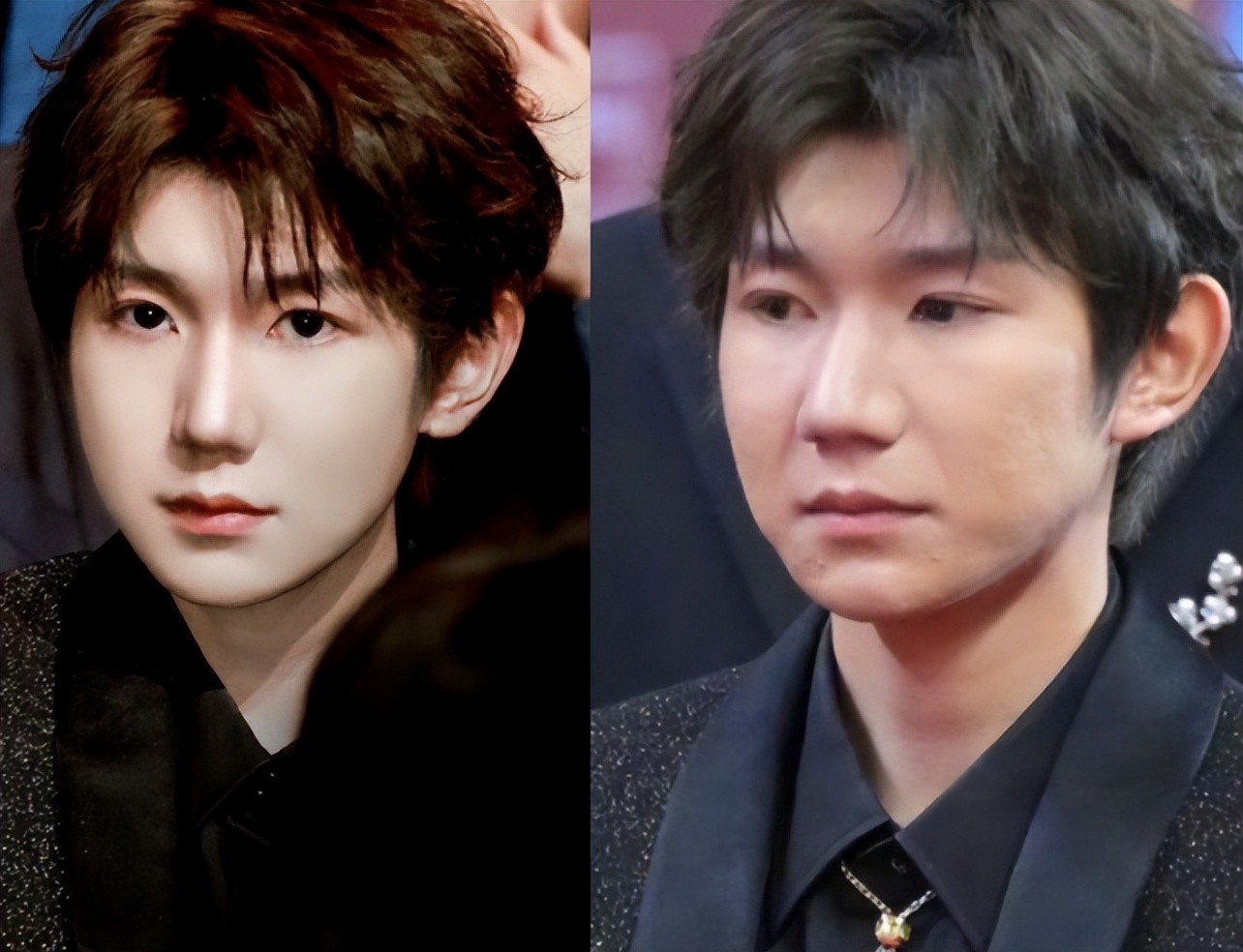首先是随着年纪的增长,王一博的脸型开始发生了变化,不像以前那么清瘦和轮廓清晰了,反而有些浮肿了。