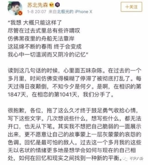 最终,这段闹剧以苏北先森官宣分手告终。