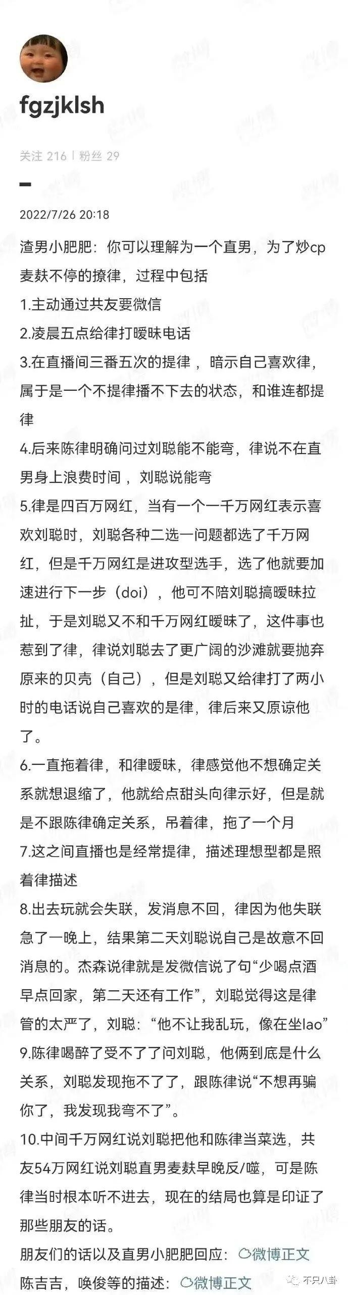 所以昂,刘聪和陈律是不是真爱还不好说,也不排除是故意炒 cp 圈粉,借着网络腐气东风割韭菜。