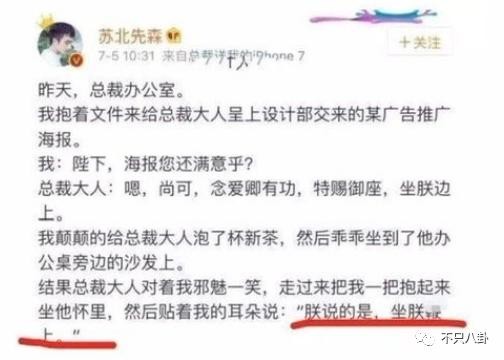 苏北先森曾在社交账号记录他和总裁日常没羞没臊的生活,真的是无畏无惧,什么都敢说。