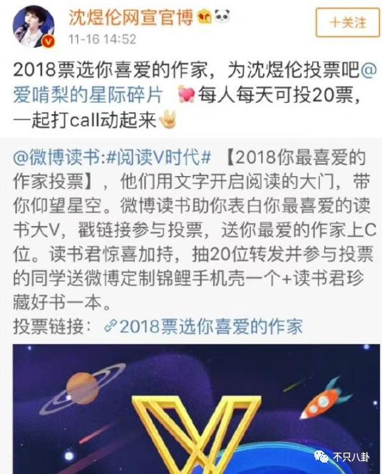 沈氏夫夫曾将他们的爱情故事写成书出版,然后在大媒举办的 "2025 票选你喜爱作家 " 的活动中,引得一众粉丝热血打榜,那阵势,丝毫不亚于粉圈妹子们为自家爱豆打投时那股抛头颅洒热血的劲儿 ↓