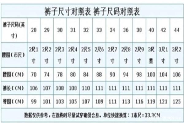 4、2尺7的腰围也就是34码,通常1市尺等于33厘米,而2尺7也就是90厘米,根据市场规定的尺寸对照码可以得出90厘米应该穿着34码的裤子90厘米的腰围一般应该穿XXL码,也就是18586A或者34码如果选的是高腰裤可以穿3334;一种是身高腰围厘米法,比如16568A,这说明是给165高,腰围68厘米的人穿的68厘米就是2尺啦凭我经验一般棉布裤子,正装裤子这样编那个A表示一般的遍法,有时候会有16570B,就是短而肥的特号很少见一种是臀围法。