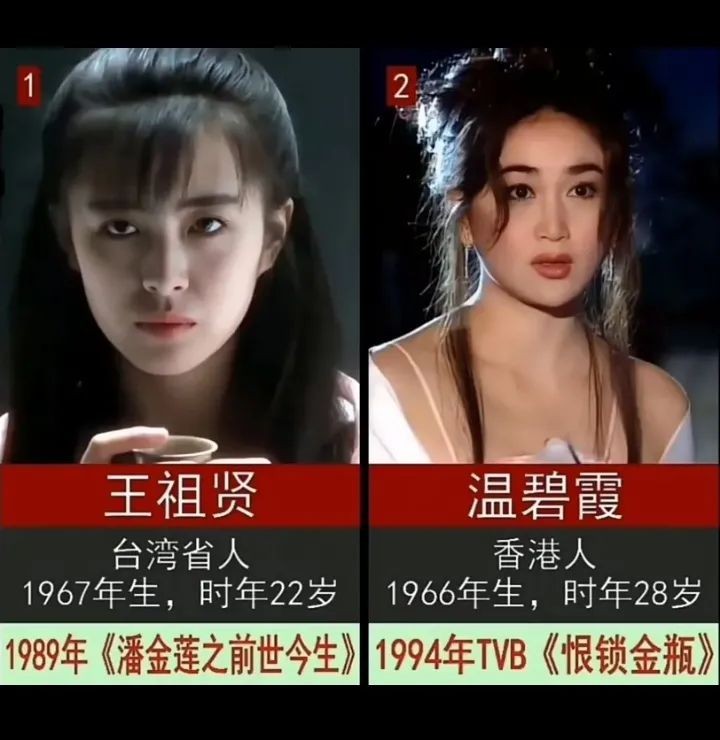 2.温碧霞——《恨锁金瓶》(1994年),剧情改编自小说《金瓶梅》。跟《水浒传》中潘金莲被武松所杀不同,这里的潘金莲后来嫁给西门庆为妾。