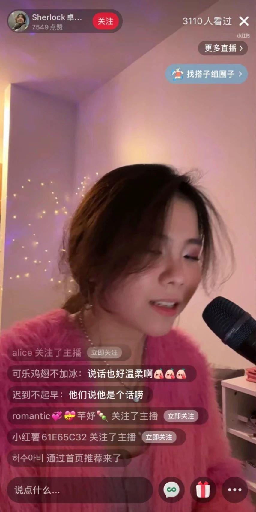 伯克利女孩 "Sherlock 卓智媛 "20 天直播了 10 场,从 0 粉涨到了 1.1W。在她的直播间,粉丝称她为迪士尼公主,而她也倾尽才艺为大家带来好歌。一个爱唱歌的女孩把直播间当成了自己的 KTV,收获了鲜花掌声也获得了成长助力。