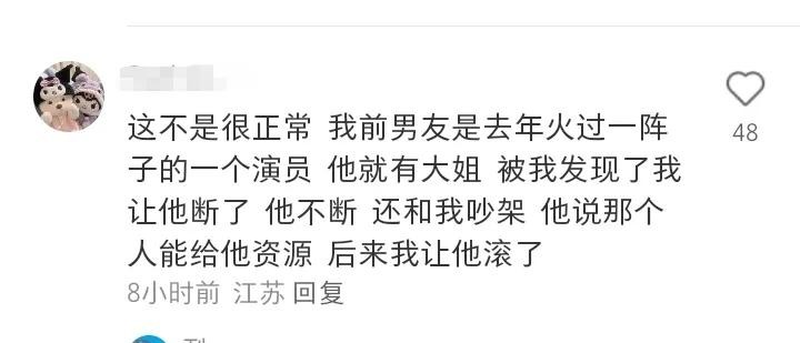 前男友是去年火过一阵子的一个演员,他就有大姐,他说那个人能给他资源。