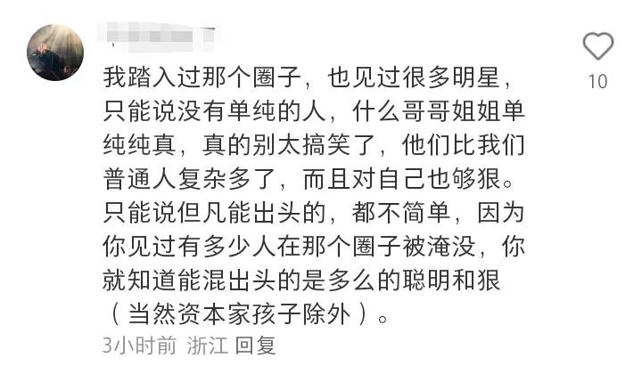 踏入过那个圈子,也见过很多明星,只能说没有单纯的人,他们比我们普通人复杂多了,而且对自己也够狠,但凡能出头的,都不简单。