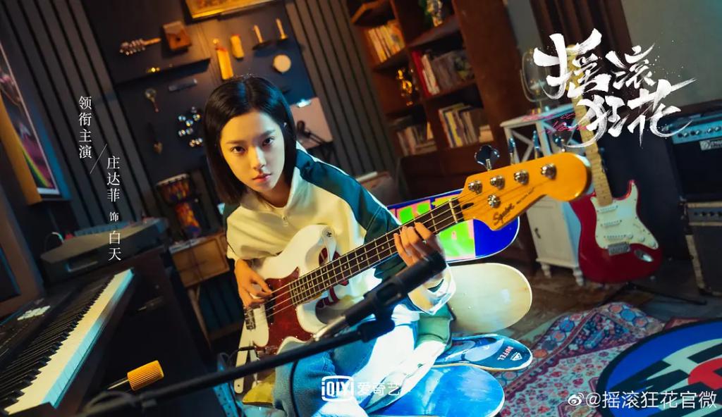 庄达菲当演员之余玩摇滚乐,她曾在网剧《摇滚狂花》里本色出演,拿起电吉他和贝斯,唱起热爱的摇滚乐 ……