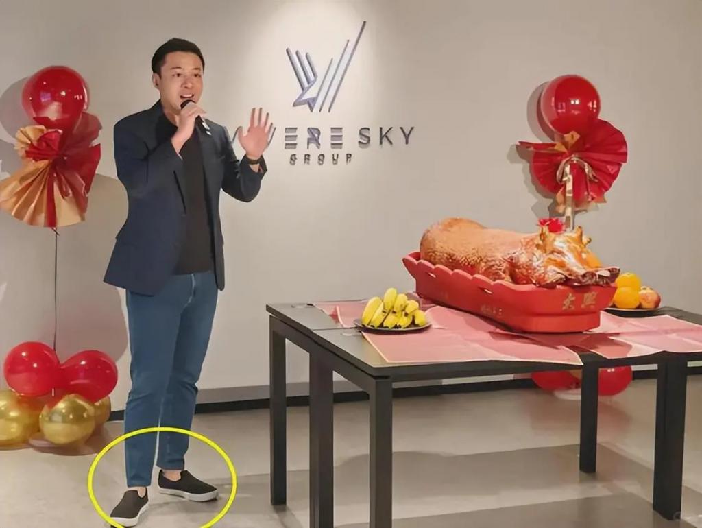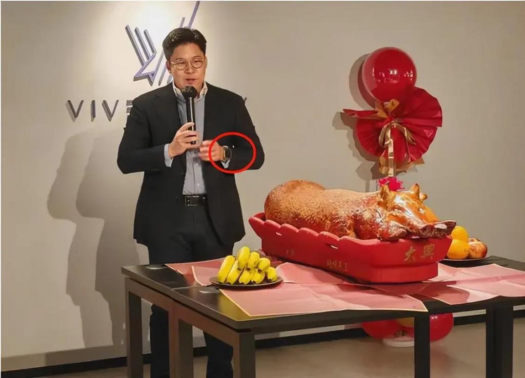 他身穿一身笔挺的黑色西装,内搭有领条纹衬衫,头发梳得一丝不苟,尽显商界精英风范。最引人注目的是,他的手腕上佩戴着价值不菲的名表,低调中透着奢华。