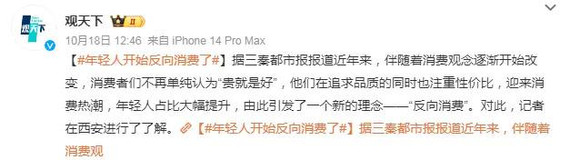 " 年轻人开始反向消费 "、" 人人都是于文亮 "、" 挑战 200 元吃遍 XXX"……