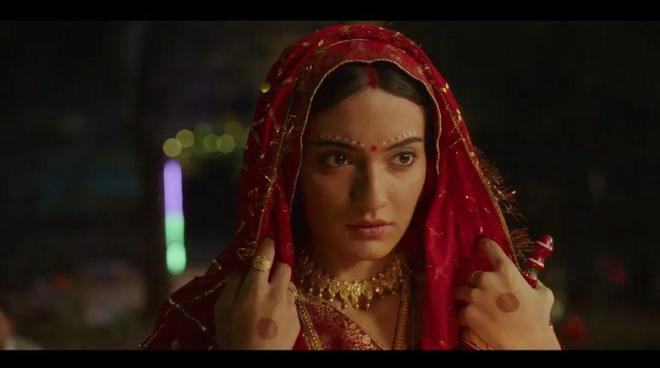 而另一头,错被领走的新娘,也就是片中另一名女主贾娅,跟着迪帕回了家才掀起盖头。